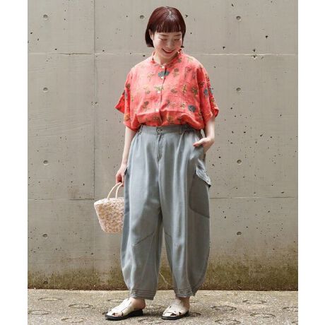 サイドの大きなパッチポケットがインパクトありで、華やかなブラウスやシャツからカジュアルなTシャツスタイルまで、幅広いコーディネートに取り入れやすいアイテムです。