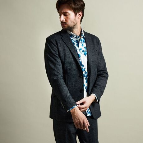 背裏、脇のフラップポケット、袖口の本切羽等、よりフォーマルな仕様に近づける事で、ビジネスシーンでも着用出来る様にしております。