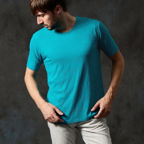 バスケットブリスタージャカードクルーネック半袖プルオーバー