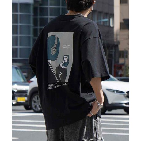 ILL’S イラストバックプリント ワンポイント刺繍 ビッグシルエット半袖Tシャツ