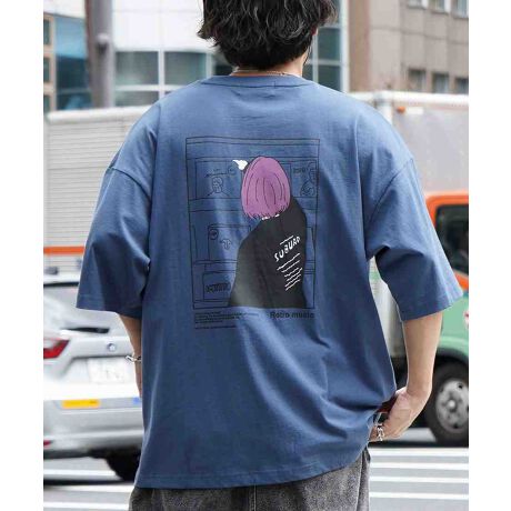 ILL’S イラストバックプリント ワンポイント刺繍 ビッグシルエット半袖Tシャツ