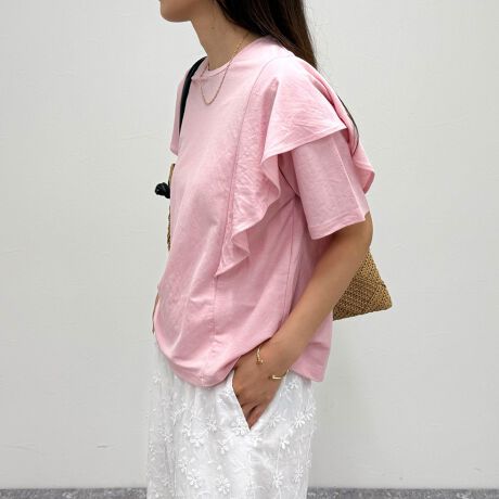 夏に重宝するラッフルショルダー半袖T