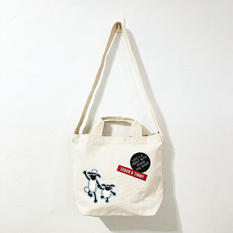 ひつじのショーンの2WAYショルダーバッグです。トートバッグとショルダーバッグの2WAYで使えて便利☆ステッカー風デザインがとってもオシャレで可愛い♪通勤や通学など普段使いにぴったりなバッグです☆