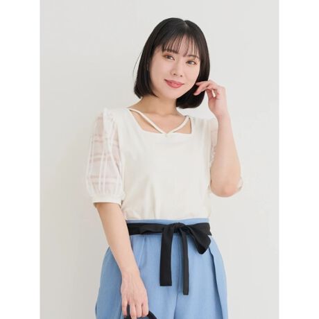 袖シアーチェックトップス