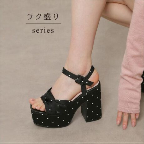 ラク盛りシリーズは安定感があります。ヒールこそ高いのですがホールド感があるのとアッパー部分もしっかり高さがあるので見た目ほど傾斜もなく疲れにくいと思います。是非脚長効果をお試しください。