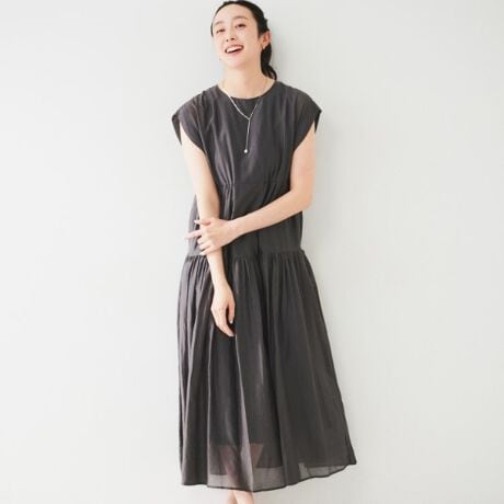程よいシアー感がエレガントなので、ジャケットやブルゾンを羽織に合わせても重たくなりすぎずコーディネートの幅が広げられます。
