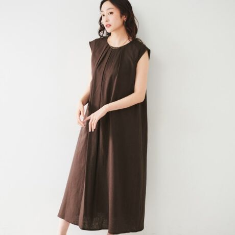 【シアー/夏ワンピ】レーヨン麻ワンピース