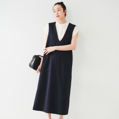 中に合わせるものによって、様々なシーンで活躍出来るワンピースです。