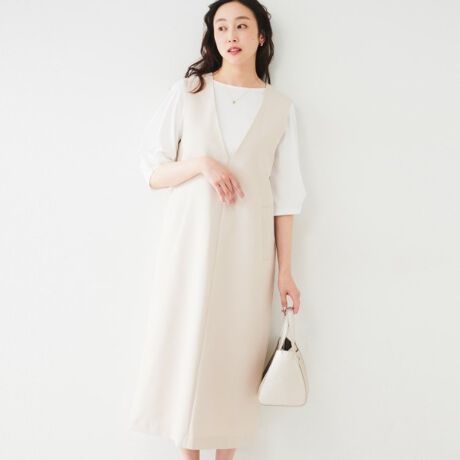 中に合わせるものによって、様々なシーンで活躍出来るワンピースです。