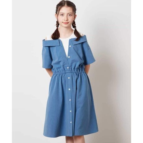 ・キッズに大人気なオフショルデザイン。肌がちら見えする肩出しディティールがヘルシーさをプラスします。