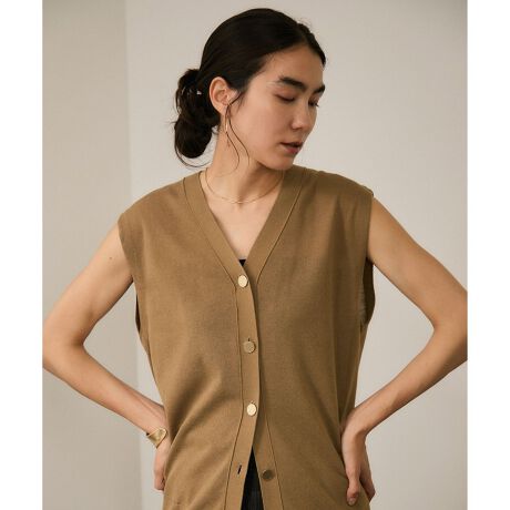 メタルボタンがポイントのニットジレ。