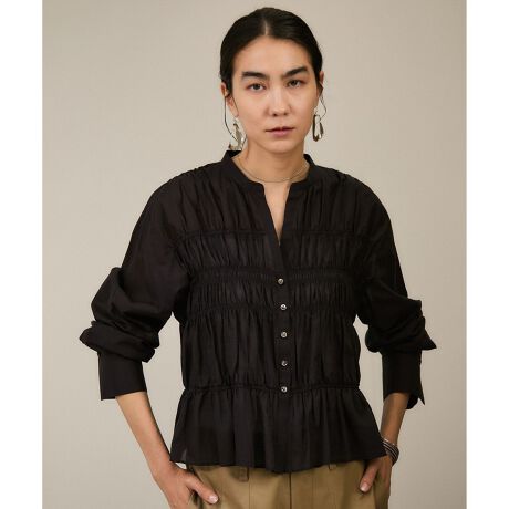ヴィンテージブラウスに着想を得た身頃のシャーリングとすっきりとしたシャープなカフスが印象的。