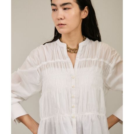 ヴィンテージブラウスに着想を得た身頃のシャーリングとすっきりとしたシャープなカフスが印象的。