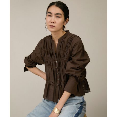 ヴィンテージブラウスに着想を得た身頃のシャーリングとすっきりとしたシャープなカフスが印象的。