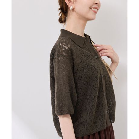 ・総レース仕立てのハーフスリーブカーディガン。