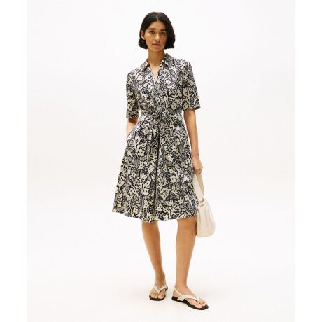 モダンなフラワープリントが大人のムードを漂わせるショートスリーブワンピース。シックなカラーリングが甘すぎず、スタイリングを引き締めます。シャツベースのデザインで、ウエストにはノットベルトのアクセントをプラス。小物合わせでアレンジが楽しめ、リゾートからタウンまでシーンレスに活躍します。