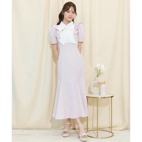 ヨーク切り替えリボンタイマーメイドワンピース