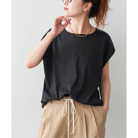 程よいフレンチスリーブで二の腕カバーしつつ、汗染み防止機能を備えた嬉しいアイテム。