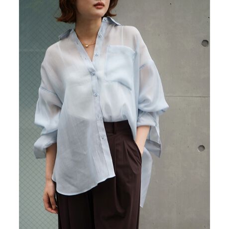 軽やかなシアー素材に、上品なとろみ感をプラスした一枚。