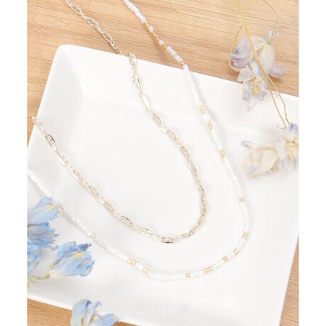 繊細なビーズチェーンを2連に重ねたネックレス。