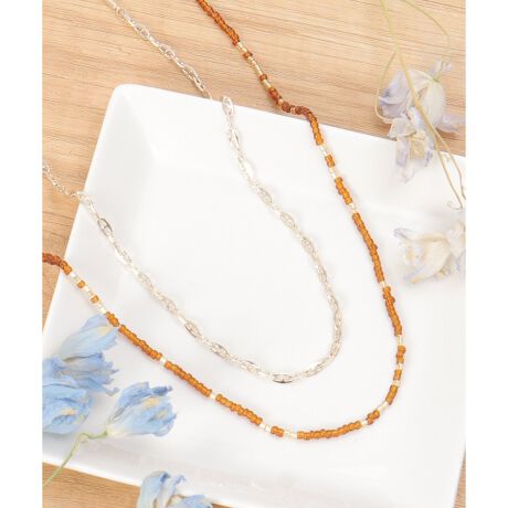 繊細なビーズチェーンを2連に重ねたネックレス。