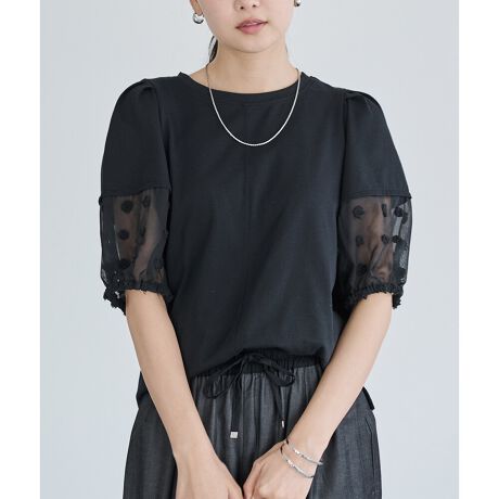 袖:立体的なドット柄・程よい透け感の柔らかなシフォン素材