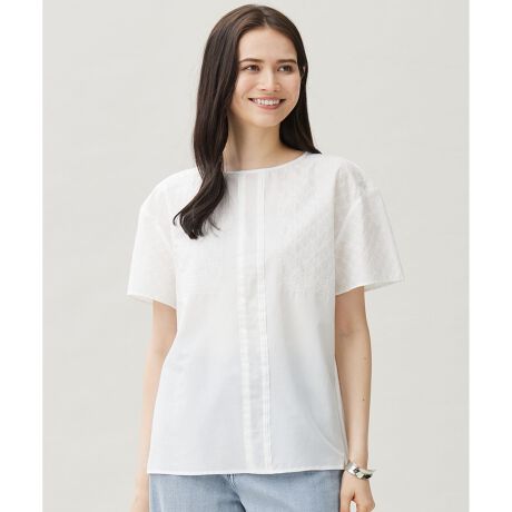 ピンタックと刺繍でお顔周りが華やぐTブラウス■デザイン前身頃に入れたピンタックとL字に描かれた繊細な刺繍が、ヨーロッパのアンティークブラウスのような雰囲気を感じられるプルオーバーブラウスです。ドロップした肩周りと広めの袖幅で、モダンなシルエットのTブラウスに仕上げました。腰周りを程よくカバーする長さで、ボトムを選ばず合わせやすいデザインです。ロンドンにある花屋Matsurika Flowers(マツリカフラワー)とのコラボレーションアイテムです。【Matsurika Flowers】ロンドンを拠点に活動する日本人フローラルデザイナーMariko KinoshitaさんによるMatsurika Flowers。花が持つナチュラルな美しさを生かし、世界の歴史やカルチャーを着想源に、ビンテージとアンティークを組み合わせたスタイルが人気です。ウェディングやイベントでフラワーアレンジメントを手がけるほか、ワークショップも開催しています。■素材セルロース系再生繊維とコットンを使用したナチュラル感がありながらもカジュアル過ぎない、適度なハリ感と滑らかな肌触りが特徴の素材です。さらりとしたタッチが蒸し暑い時期にも着て頂きやすく、接触冷感機能付きで清涼感を感じられる暑い夏にもおすすめの素材です。刺繍に取り入れたモチーフは、ダリアやジニアなど夏に咲く花を抽象的に描いています。上質な生地を傷つけないよう繊細なテクニックを用い、たっぷりと糸数を使用しカットワークも施した、デザイン性の高さとテクニックの繊細さが光る刺繍素材です。■同素材アイテムシャツブラウス(BLW7GA0003)プルオーバーブラウス(BLW7GA6701)スカート(SKW7GA0003)シャツワンピース(OPW7GA0003)
