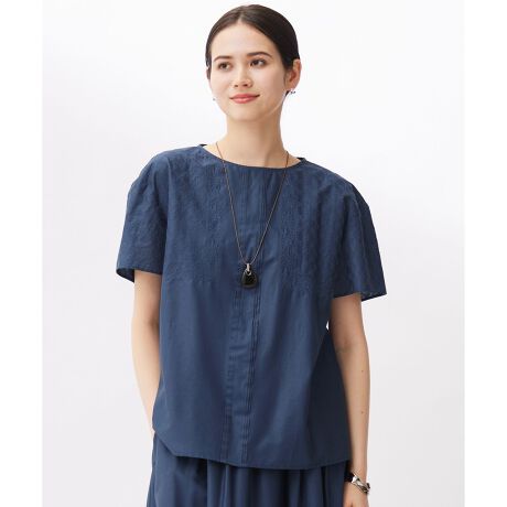 ピンタックと刺繍でお顔周りが華やぐTブラウス■デザイン前身頃に入れたピンタックとL字に描かれた繊細な刺繍が、ヨーロッパのアンティークブラウスのような雰囲気を感じられるプルオーバーブラウスです。ドロップした肩周りと広めの袖幅で、モダンなシルエットのTブラウスに仕上げました。腰周りを程よくカバーする長さで、ボトムを選ばず合わせやすいデザインです。ロンドンにある花屋Matsurika Flowers(マツリカフラワー)とのコラボレーションアイテムです。【Matsurika Flowers】ロンドンを拠点に活動する日本人フローラルデザイナーMariko KinoshitaさんによるMatsurika Flowers。花が持つナチュラルな美しさを生かし、世界の歴史やカルチャーを着想源に、ビンテージとアンティークを組み合わせたスタイルが人気です。ウェディングやイベントでフラワーアレンジメントを手がけるほか、ワークショップも開催しています。■素材セルロース系再生繊維とコットンを使用したナチュラル感がありながらもカジュアル過ぎない、適度なハリ感と滑らかな肌触りが特徴の素材です。さらりとしたタッチが蒸し暑い時期にも着て頂きやすく、接触冷感機能付きで清涼感を感じられる暑い夏にもおすすめの素材です。刺繍に取り入れたモチーフは、ダリアやジニアなど夏に咲く花を抽象的に描いています。上質な生地を傷つけないよう繊細なテクニックを用い、たっぷりと糸数を使用しカットワークも施した、デザイン性の高さとテクニックの繊細さが光る刺繍素材です。■同素材アイテムシャツブラウス(BLW7GA0003)プルオーバーブラウス(BLW7GA6701)スカート(SKW7GA0003)シャツワンピース(OPW7GA0003)