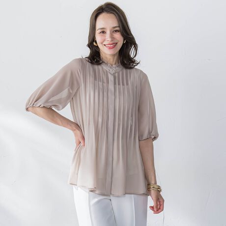 ピンタックを贅沢に施したバルーンスリーブブラウス。