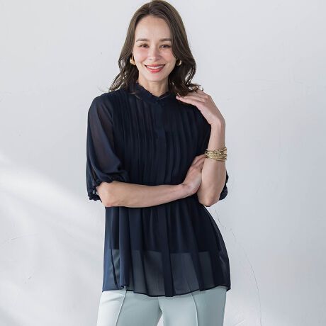 キレイ目で涼し気なジョーゼット素材を使用しているのでフェミニンでありながら落ち着いた印象に仕上げています。