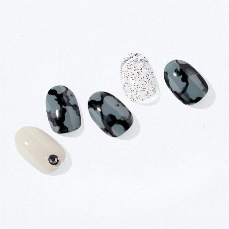 心躍るナイトアウトの前に、アクセサリー感覚で選びたいネイル。流れるようなマーブルのアートと、優しい光を宿したストーンテクスチャーを組み合わせ、Happy感の中にもしっとり落ち着いた印象に。その日の気分やムードにあわせて自分らしいスタイルで楽しんで。