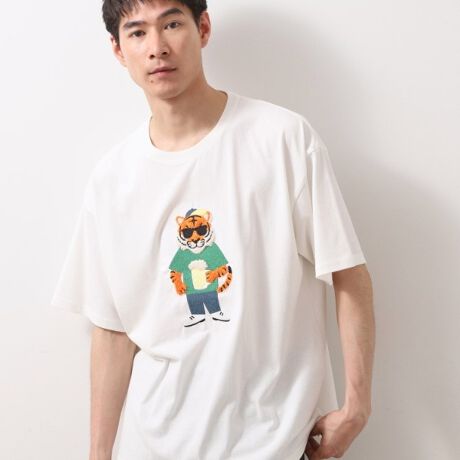 アニマル刺繍半袖Tシャツ 【洗濯機OKユニセックス】