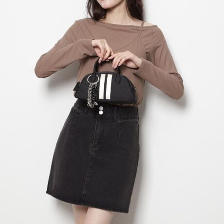カジュアルながらもサテン生地を使用し垢抜けした雰囲気のミニボストンバッグ。