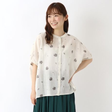 ゆったりな着心地と通気性の良い綿麻ボイルを使用した幅広ブラウス。