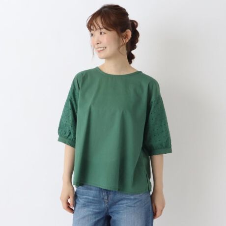 柔らかいコットン100%を使用した袖刺繍ブラウス。