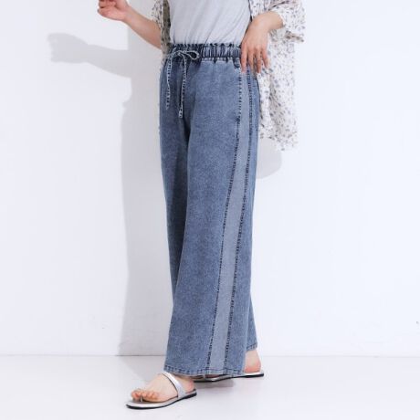【S-LL】サイドラインがアクセント イージーデニムパンツ