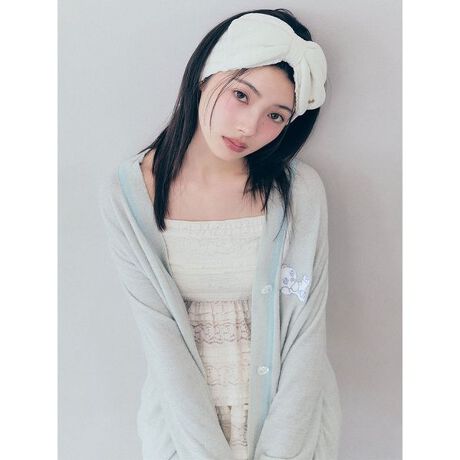 氷の上でのんびりくつろぐ『icy baby』を刺繍であしらった、接触冷感&UVカット機能を備える「Sorbet Touch Cool」素材のニットカーディガンです。