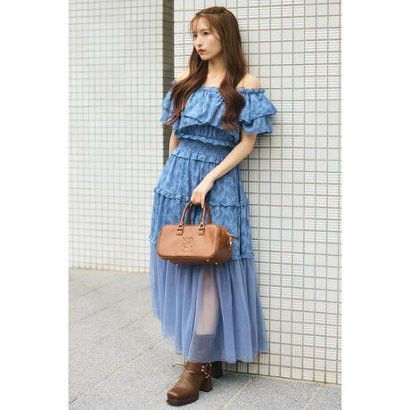 【存在感がありながらも儚げでシアー感が美しいドラマチックなオフショルティアードワンピース】■ポイント程よく透け感が美しいオフショルのティアードワンピースは、着心地の良い軽やかなジャガードシアーレース生地を使用。ティアードスカートでふんわりとさせ、レディで優しい印象へと導きます。オフショルデザインにすることで、上品でヘルシーな肌見せを叶えました。ウエスト部分はゴムジャーリングにしているので、着用時のストレスも減少させました。ショルダーのチェーンは取り外しても着用していただけます。肩部分は肩にのせて着用もできます。膝下からはチュールのみにすることで軽やかさをプラスしコントラストで、一層華やかさを演出してくれます。■ディテールトップス部分はカシュクールデザインを取り入れて華やかに。スカート部分は膝下から透け感をだすことでヘルシーな肌見せを可能にしました。■スタイリング足元にブーツを合わせて甘辛ミックススタイルを楽しむのがおすすめ。もちろん、ミュールやサンダルを合わせて綺麗目コーデも◎■生地透け感:あり裏 地:あり伸縮性:なし光沢感:なし厚 さ:薄手■商品のお気に入り登録お気に入りアイテムの再入荷・在庫1点などの通知を受け取ることができます。[注意事項]※画像の商品はサンプルです。実際の商品と仕様、加工が若干異なる場合があります。※画像の商品は光の照射や角度、お使いのモニター環境により、実物と色味が異なる場合がございます。※着用、お取り扱いの際は、アテンションタグをご確認ください。