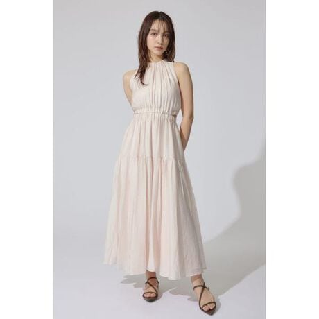 【ホルターネックのデザインがヘルシーさと女性らしさを引き立てるフレアワンピース】■ポイントギャザーを効かせたネックとウエストから広がるフレアシルエットが、女性らしさをトレンド感に引き立ててくれます。襟とウエストはぐるりゴム仕様なので、ファスナーも無く簡単に着脱出来るのが嬉しいポイント。■ディテールホルターネックにする事で、上から下へ向かって三角形のシルエットを作り、自然と美しいバランスに魅せてくれます。フロントから自然と背中に向かって開いたウエストのデザインが、今時な肌見せを叶えます。■スタイリング1着で華やかなアイテムですが、肌見せが気になる時は薄手の編み地のカーディガン合わせがおすすめです。■生地透け感:なし裏 地:あり伸縮性:なし光沢感:ややあり厚 さ:なし■商品のお気に入り登録お気に入りアイテムの再入荷・在庫1点などの通知を受け取ることができます。[注意事項]※画像の商品はサンプルです。実際の商品と仕様、加工が若干異なる場合があります。※画像の商品は光の照射や角度、お使いのモニター環境により、実物と色味が異なる場合がございます。※着用、お取り扱いの際は、アテンションタグをご確認ください。
