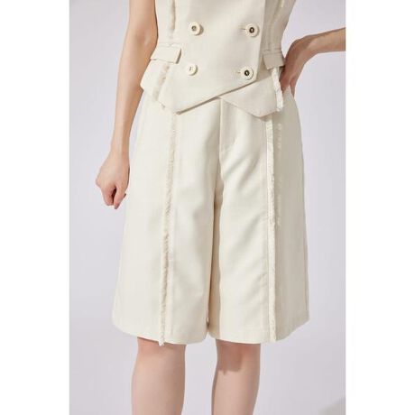 【サマーツイードを使ったバミューダパンツをriendaらしく落とし込んだ1着】■ポイントドライタッチなサマーツイード使ったトレンディーなバミューダパンツがお目見え。riendaらしく女性らしいサイズ感、シルエットに落とし込みました。ベルトセットなのも嬉しいポイントです。■ディテール裾とセンター部分にフリンジを贅沢に施しシックな印象に。センター部分にポイントを持ってくることでスタイルアップをかなえてくれます。着こなしが難しい印象になりがちなハーフパンツですがシルエットに拘り女性らしいサイジング、シルエットなのでオフショルダーやフリル系のアイテムとの相性も良く、バランスよく着られるよう作成しました。■スタイリング同じ生地で作成している(110IS530-2501)テーラードベストとのシックな合わせがおすすめです。■生地透け感:なし裏 地:あり伸縮性:なし光沢感:なし厚 さ:中肉■商品のお気に入り登録お気に入りアイテムの再入荷・在庫1点などの通知を受け取ることができます。[注意事項]※画像の商品はサンプルです。実際の商品と仕様、加工が若干異なる場合があります。※画像の商品は光の照射や角度、お使いのモニター環境により、実物と色味が異なる場合がございます。※着用、お取り扱いの際は、アテンションタグをご確認ください。