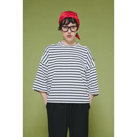DAIRYに着まわせて夏場活躍するボーダーカットソー。大人でも気にならないショルダーのあき具合が女性らしさを演出してくれます。コットンボーダー天竺を使用しています。ショルダースリットボックストップス[注意事項] ※画像の商品はサンプルです。実際の商品と仕様、加工が若干異なる場合があります。 ※画像の商品は光の照射や角度、お使いのモニター環境により、実物と色味が異なる場合がございます。 ※着用、お取り扱いの際は、アテンションタグをご確認ください。