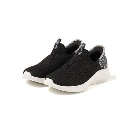 Stretch FitTM(ストレッチフィット)エンジニアードニットを使用したアッパーに、レオパードプリントを施したSkechers Slip-ins(スケッチャーズ スリップインズ)モールド ヒールパネルを組み合わせたレースレスのスタイルです。