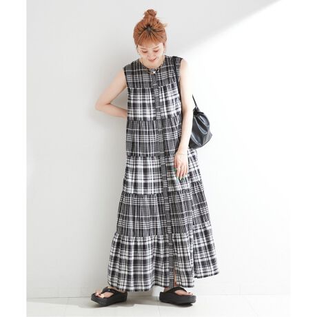 手洗い可 / ティアードチェックスリーブレスワンピース