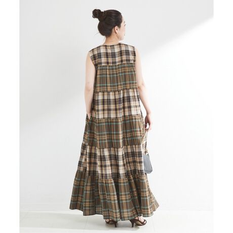 手洗い可 / ティアードチェックスリーブレスワンピース