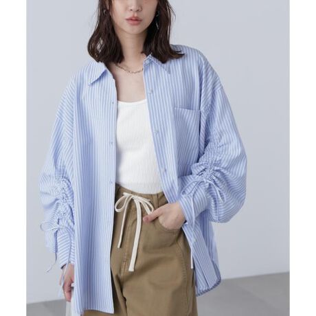 洗いをかけた風合いのあるコットン100%の素材を使用したオーバーシャツ。クタっとした手触りが心地よく、シワも気になりにくいです。厚手すぎないので羽織としてはもちろん、アウターINもかさばらず着ていただけます。生地が柔らかいので、ビスチェを上から着るスタイリングがおススメ。ドロップした肩線から袖口にかけてドロストしたデザインは、ドロストの調整で袖丈の長さを変えて着用できます。パンツやミニスカートともバランスが取りやすいデザインです。同素材のインナーパンツ付きナチュラルコットンバルーンミニスカート(店舗商品番号131-5220074)とのSETUPコーデもおすすめ。※モデルの着用画像の場合、光の当たり具合により、実際の色味と異なって見えることがございます。色味は、商品単体の画像をご参照ください。