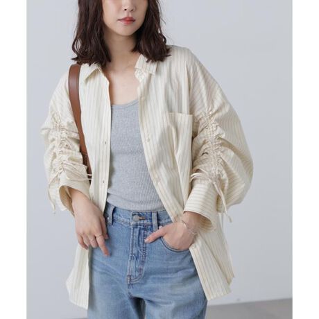 袖シャーリングオーバーシャツ