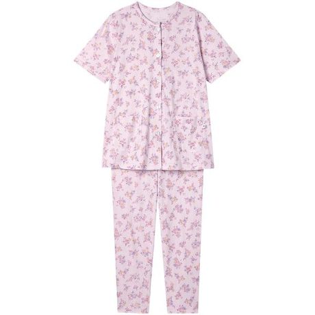 【パジャマ(5分袖ロングパンツ)】「ワコール人間科学研究開発センター」の女性の体型データをもとにしたグランダー独自のサイズ設計は、ゆったり快適な着ごこち。・着ごこちゆったり親切設計のポイント1.背・脇に縫い付けネームがなく、やさしい肌あたり2.留めはずしラクラク大きめボタン3.やわらかなゴムでウエストがラク4.深めの前合わせですきまから胸もとが見えにくい5.ズボンの前後がわかりやすい目印付き6.くいこみにくく動きやすいマチ付き7.裾口、ウエストにゴム替え口・本体に、薄手の綿100%の天竺素材を使用・水彩画タッチの可憐な花柄プリント・ネックにほどこした光沢のあるニットパイピングがアクセントに【サイズ詳細】SP:身幅49.5cm 着丈63.5cm 身丈66.0cm 肩幅37.0cm 袖丈24.5cm ボトム脇丈90.0cm 裾まわり32.5cm ウエスト55.0cm 股下(レングス)62.0cm ヒップ101.5cmMP:身幅53.5cm 着丈63.5cm 身丈66.0cm 肩幅39.0cm 袖丈24.5cm ボトム脇丈90.5cm 裾まわり34.0cm ウエスト60.0cm 股下(レングス)62.0cm ヒップ106.5cmLP:身幅57.5cm 着丈63.5cm 身丈66.5cm 肩幅41.0cm 袖丈24.5cm ボトム脇丈91.5cm 裾まわり35.5cm ウエスト65.0cm 股下(レングス)62.0cm ヒップ111.5cmM:身幅53.5cm 着丈68.5cm 身丈71.5cm 肩幅40.0cm 袖丈26.0cm ボトム脇丈95.5cm 裾まわり34.0cm ウエスト60.0cm 股下(レングス)65.5cm ヒップ109.5cmL:身幅57.5cm 着丈68.5cm 身丈71.5cm 肩幅42.0cm 袖丈26.0cm ボトム脇丈96.5cm 裾まわり35.5cm ウエスト65.0cm 股下(レングス)65.5cm ヒップ114.5cmLL:身幅61.5cm 着丈69.5cm 身丈72.5cm 肩幅44.0cm 袖丈26.5cm ボトム脇丈96.5cm 裾まわり37.5cm ウエスト70.0cm 股下(レングス)65.5cm ヒップ119.5cm3L:身幅65.5cm 着丈70.5cm 身丈74.0cm 肩幅46.0cm 袖丈26