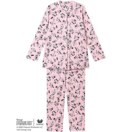 【PEANUTS×ワコール】1950年に新聞コミックとしてスタートした「PEANUTS」とワコールがコラボレーション。世界中で愛されるスヌーピーや個性豊かな仲間たちのデザインでおうち時間を楽しんで。【パジャマ(ロング袖ロングパンツ)】・本体に、綿100%のスムース素材を使用・個性豊かな仲間たちとスヌーピーをプリント【サイズ詳細】M:身幅52.0cm 着丈67.0cm 身丈69.5cm 肩幅40.0cm 袖丈55.0cm ボトム脇丈95.0cm 裾まわり39.0cm ウエスト58.0cm ヒップ100.5cm 股下(レングス)67.5cmL:身幅56.0cm 着丈67.0cm 身丈70.0cm 肩幅41.5cm 袖丈55.0cm ボトム脇丈95.5cm 裾まわり41.0cm ウエスト63.0cm ヒップ104.5cm 股下(レングス)67.0cmLL:身幅60.0cm 着丈68.0cm 身丈71.0cm 肩幅43.0cm 袖丈55.5cm ボトム脇丈96.0cm 裾まわり44.0cm ウエスト68.0cm ヒップ109.5cm 股下(レングス)67.0cm※出来上がり寸法を表示しております※アイテムによって柄の出方が異なりますのでご了承ください。