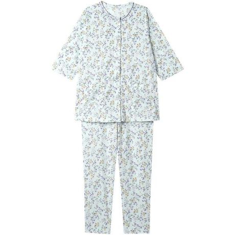 【パジャマ(7分袖ロング分パンツ)】「ワコール人間科学研究開発センター」の女性の体型データをもとにしたグランダー独自のサイズ設計は、ゆったり快適な着ごこち。グランダーならではの便利でやさしい工夫をほどこした親切設計のパジャマです。・着ごこちゆったり親切設計のポイント1.背・脇に縫い付けネームがなく、やさしい肌あたり2.留めはずしラクラク大きめボタン3.やわらかなゴムでウエストがラク4.深めの前合わせですきまから胸もとが見えにくい5.ズボンの前後がわかりやすい目印付き6.くいこみにくく動きやすいマチ付き7.裾口、袖口、ウエストにゴム替え口・家庭用タンブル乾燥機対応・大人のかわいらしさが漂う、サクランボ柄のプリント・ネックにほどこした光沢のあるニットパイピングがアクセントに【サイズ詳細】SP:身幅49.5cm 着丈63.5cm 身丈66.0cm 肩幅37.0cm 袖丈37.5cm ボトム脇丈90.0cm 裾まわり32.5cm ウエスト55.0cm 股下(レングス)62.0cm ヒップ101.5cmMP:身幅53.5cm 着丈63.5cm 身丈66.0cm 肩幅39.0cm 袖丈37.5cm ボトム脇丈90.5cm 裾まわり34.0cm ウエスト60.0cm 股下(レングス)62.0cm ヒップ106.5cmLP:身幅57.5cm 着丈63.5cm 身丈66.5cm 肩幅41.0cm 袖丈37.5cm ボトム脇丈91.5cm 裾まわり35.5cm ウエスト65.0cm 股下(レングス)62.0cm ヒップ111.5cm※出来上がり寸法を表示しております※アイテムによって柄の出方が異なりますのでご了承ください。