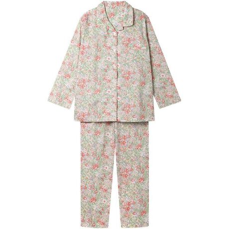 【パジャマ(ロング袖ロングパンツ)】・本体に、細番手の糸を高密度で織りこんだ、綿100%の布帛素材を使用・ハリ感がありながら、軽やかな着ごこち・ハマカラーの下襟にボタンループがあるので、好みに合わせて開閉でき、二通りのデザインが楽しめる・繊細なタッチで描かれた上品な花柄のプリント【サイズ詳細】M:身幅53.0cm 着丈67.0cm 身丈69.5cm 肩幅46.0cm 袖丈52.0cm ボトム脇丈95.0cm 裾まわり41.0cm ウエスト58.0cm ヒップ107.5cm 股下(レングス)66.0cmL:身幅57.0cm 着丈67.0cm 身丈69.5cm 肩幅48.0cm 袖丈52.0cm ボトム脇丈95.5cm 裾まわり43.0cm ウエスト63.0cm ヒップ111.5cm 股下(レングス)66.0cmLL:身幅61.0cm 着丈68.0cm 身丈70.5cm 肩幅49.0cm 袖丈52.5cm ボトム脇丈96.0cm 裾まわり46.0cm ウエスト68.0cm ヒップ116.5cm 股下(レングス)66.0cm※出来上がり寸法を表示しております※アイテムによって柄の出方が異なりますのでご了承ください。